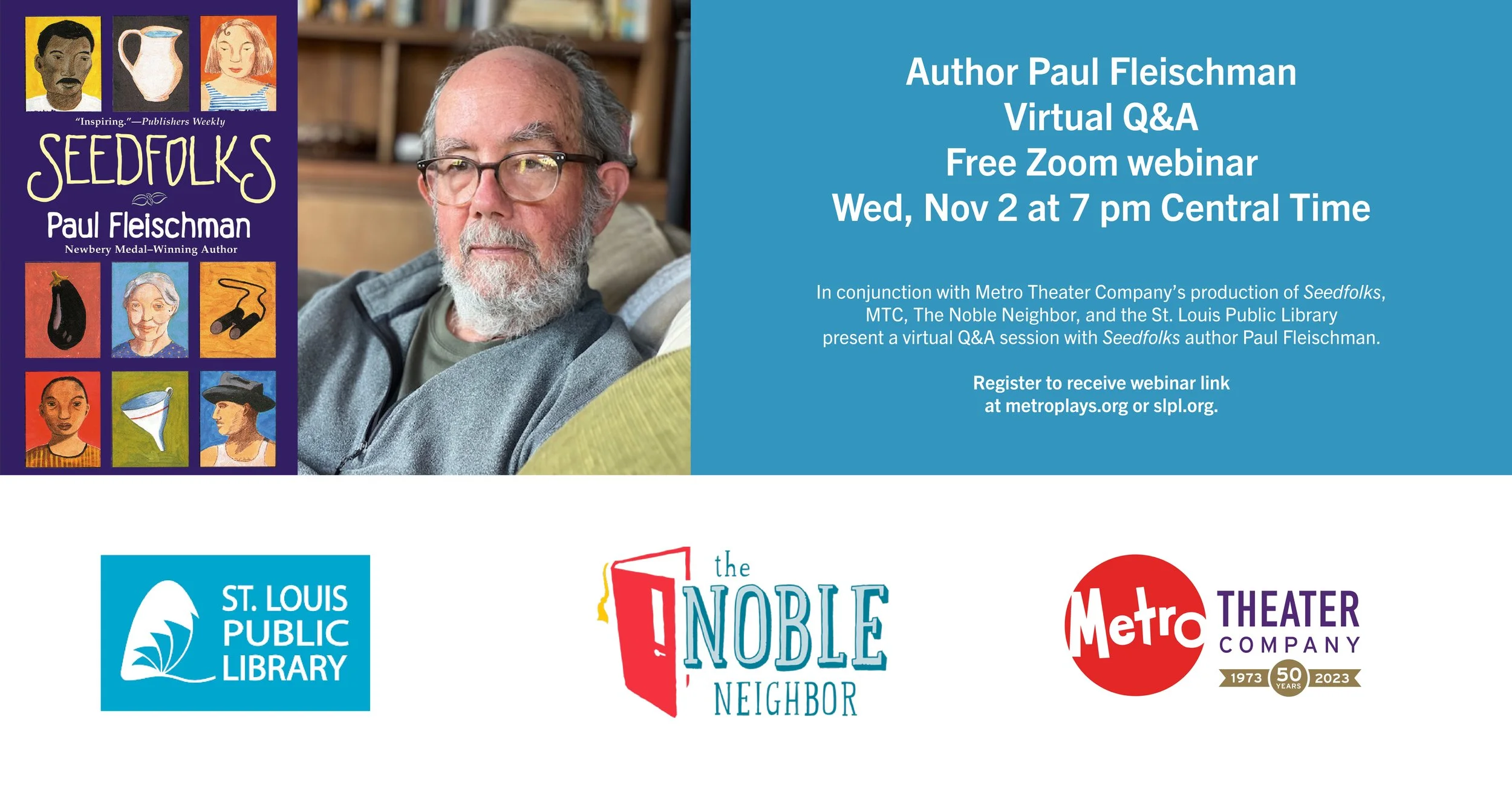 In conjunction with Metro Theater Company’s production of Seedfolks, MTC, The Noble Neighbor, and the St. Louis Public Library present a virtual Q&A session with Seedfolks author Paul Fleischman.