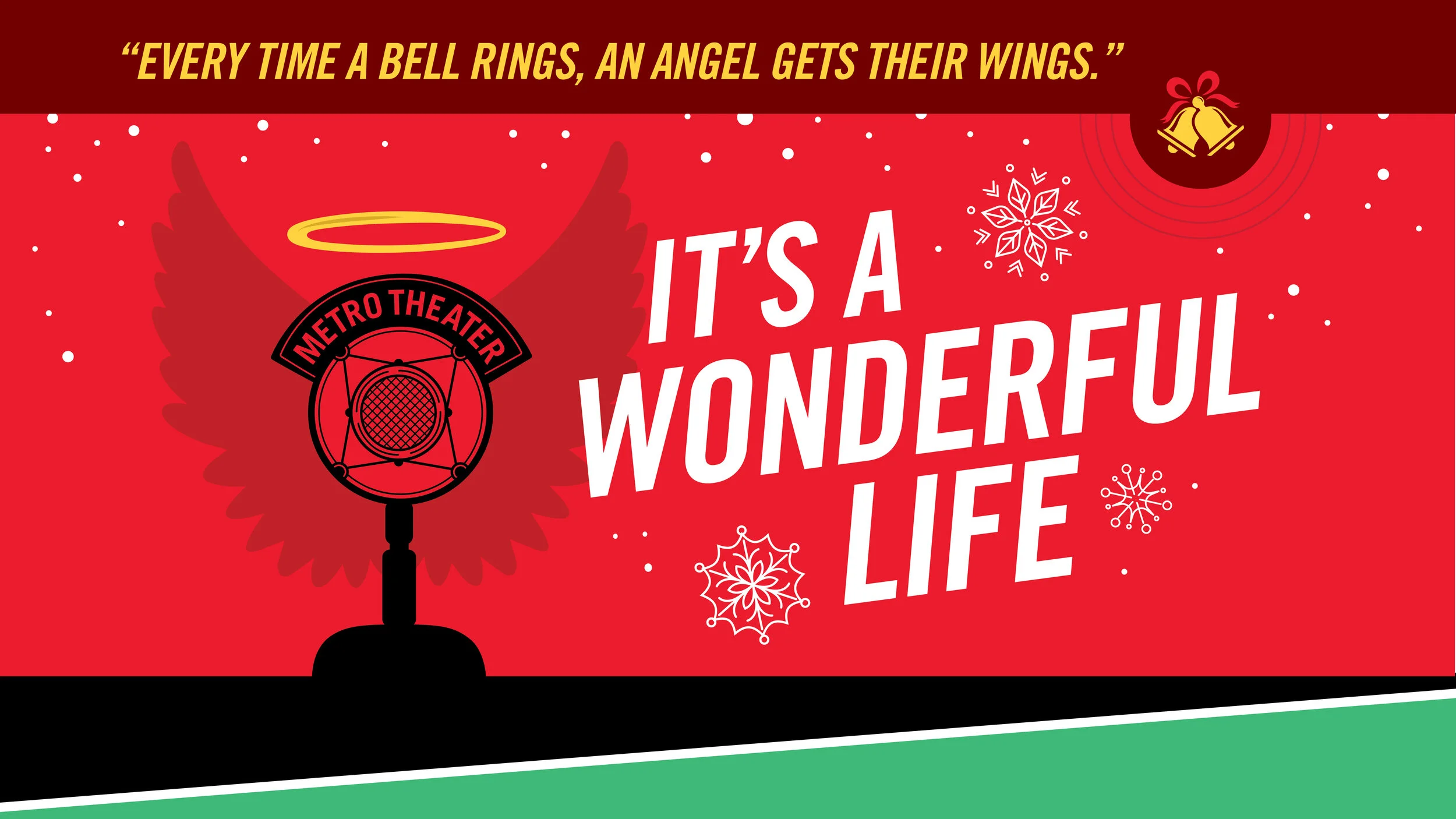 Donors at all levels will receive a Metro Theater Company wings button and have the opportunity to ring Zuzu’s bell before or after any performance of It’s a Wonderful Life. Thank you to all of our angels for making our work possible!